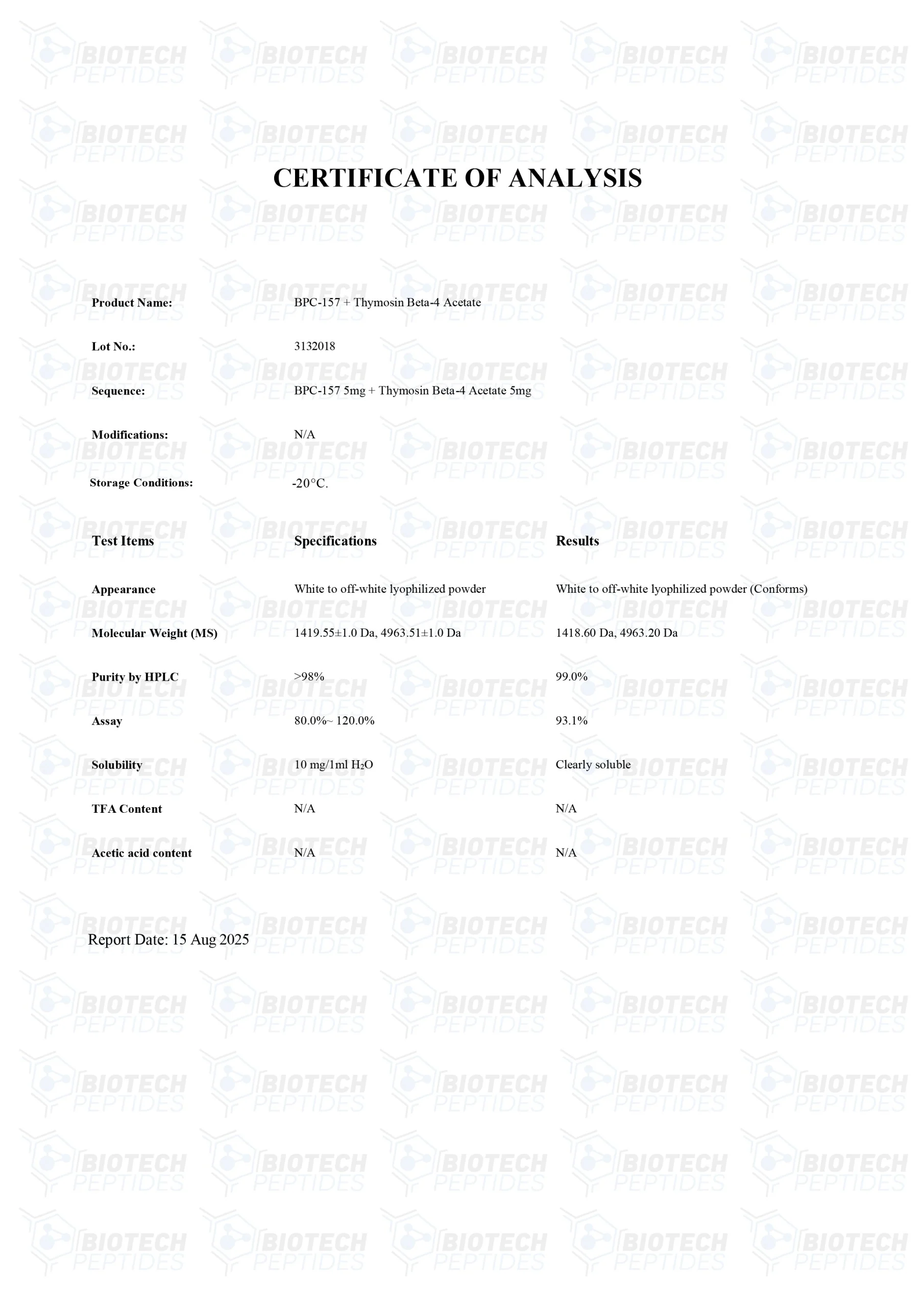 BPC-157 and TB-500 peptides have both been examined in research on tissue repair processes, although study findings indicate that the compounds may use different biochemical pathways to achieve this potential. Researchers also hypothesize that the two molecules may exhibit synergistic effects in the healing process when exposed in combination.[1] The synergistic effect of the blend may improve the overall flexibility and adjustability of the tissues following damage.
