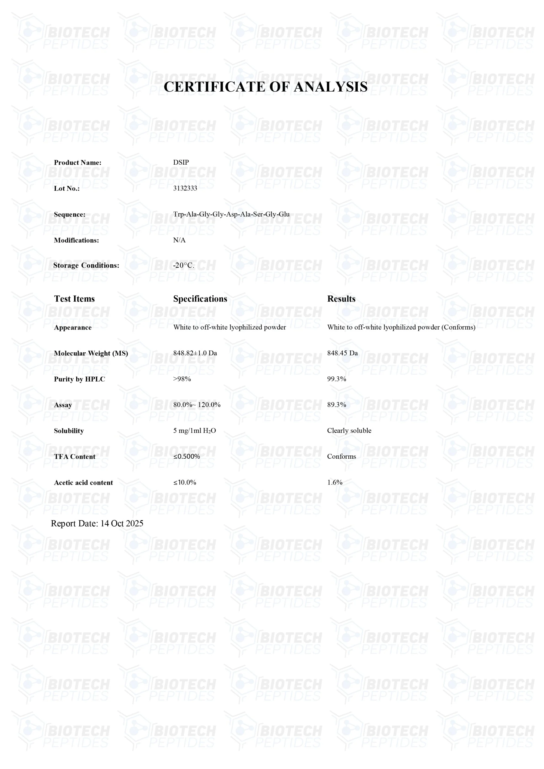 DSIP is purported to influence the structure and quality of sleep through its interactions with the central nervous system. It is speculated that DSIP may shorten the onset of sleep and enhance sleep quality by modulating the activity of several neurotransmitters in the brain. However, the precise mechanisms and pathways by which DSIP operates remain unclear.