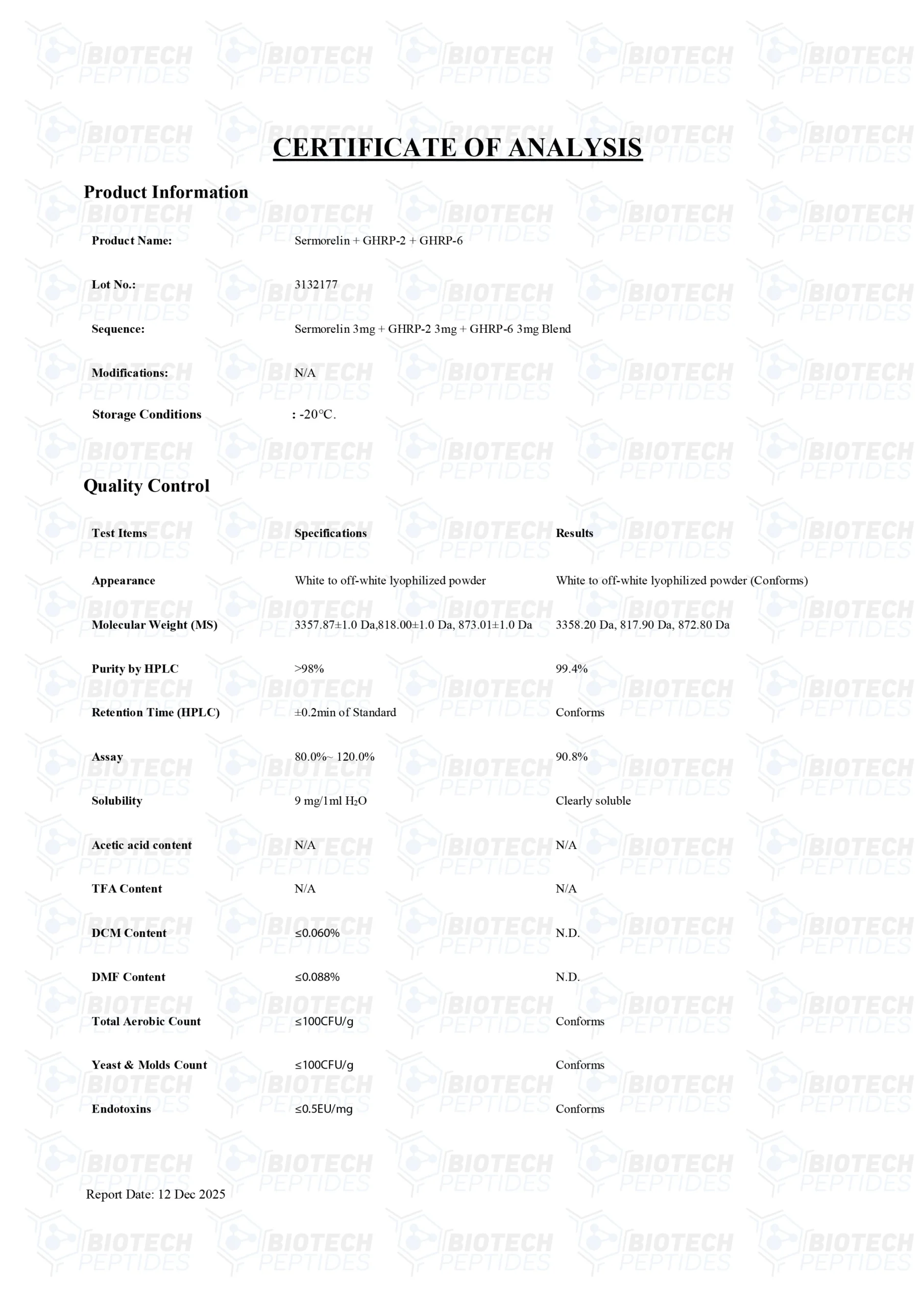Sermorelin[2] Specifications