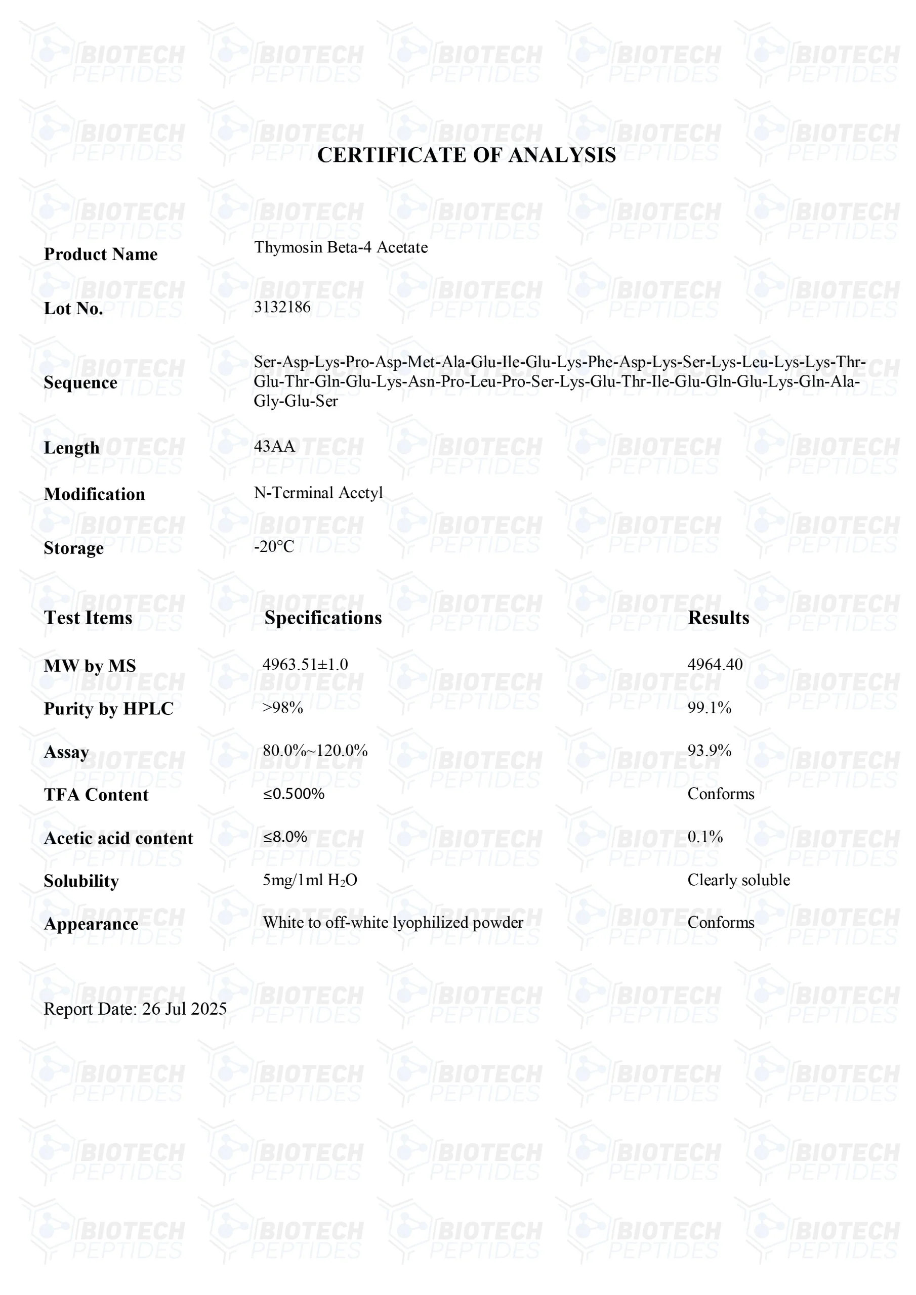 TB-500, or Thymosin Beta-4, is a synthetic analog of the endogenous Thymosin beta 4 protein, which is considered ubiquitously present in cells. The peptide belongs to a widespread family of 16 related molecules considered to exhibit a high degree of sequence conservation and localization in the majority of tissues and circulating cells.